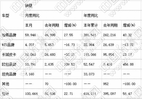 分业务板块来看,长城汽车旗下哈弗、长城皮卡、WEY、欧拉及坦克五大品牌在6月的销量分别为59946辆、18060辆、4707辆、10791辆、7160辆;上半年的累计销量分别为391541辆、118066辆、22984辆、52547辆、33073辆。