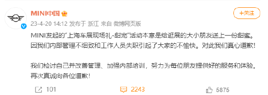 2023年上海车展,本是车圈产品展示、技术交流的时间节点,但被宝马MINI冰淇淋事件强势霸占“C位”。事件于4月20日开始发酵,截至4月21日,该事件话题已引发90.0万次讨论。