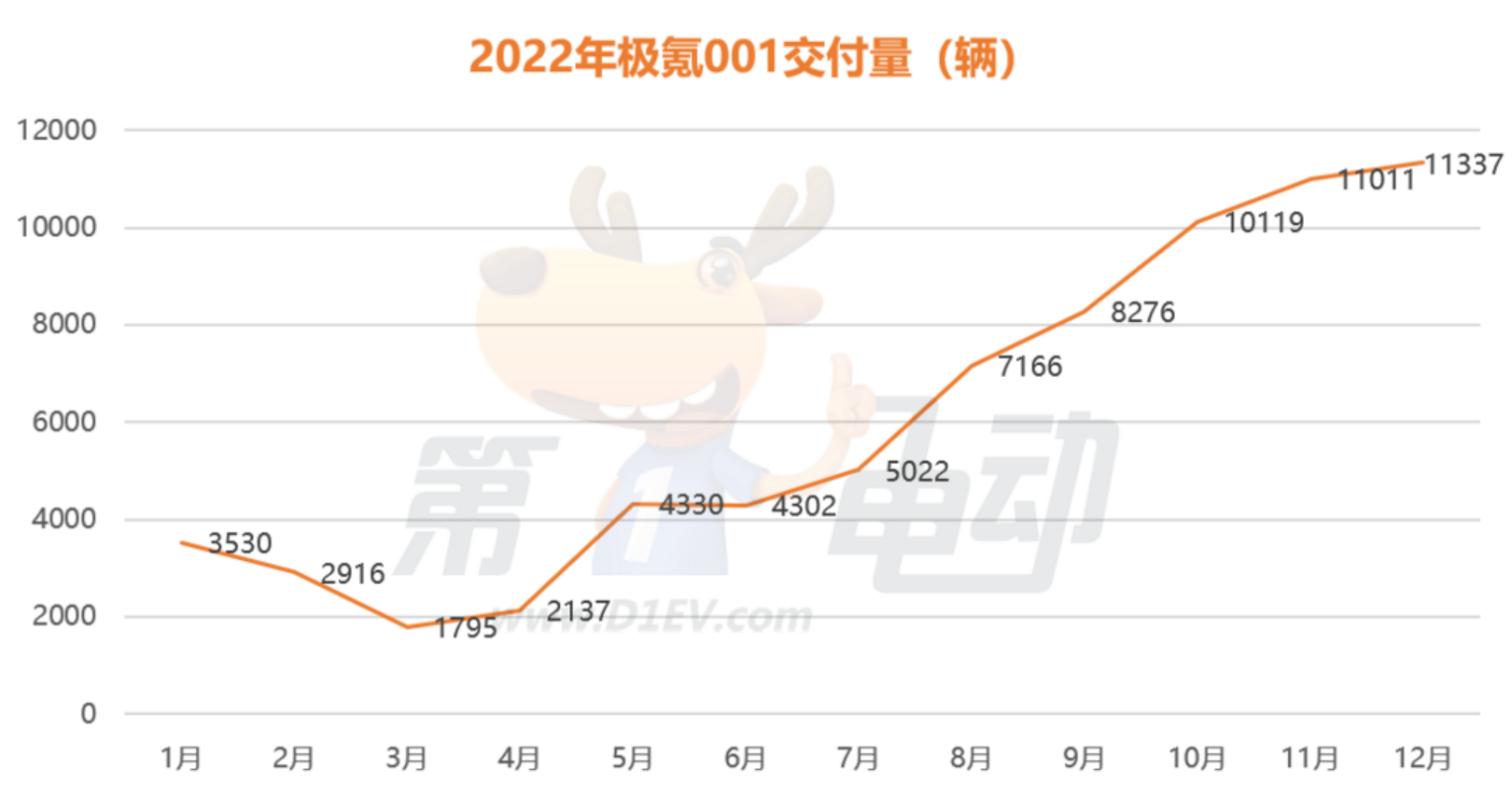 值得一提的是,凭借一款极氪001,极氪在2022年实现了72,000 辆的年销量,同时计划2023年将年销量翻一番至 14 万辆。
