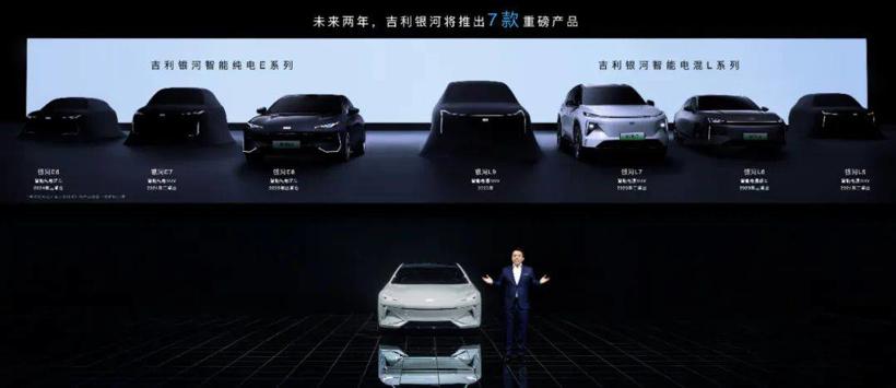 中高端新能源系列——“吉利银河”计划在2年内将推出7款全新车型。其中4款智能电混L系列基于吉利银河智能“电混”架构打造,覆盖A0级到B级智能电混产品,首款电混SUV银河L7、首款电混轿车银河L6将分别于今年二、三季度交付;3款智能纯电E系列基于吉利银河智能“纯电”架构打造,覆盖A级到D级智能纯电产品,首款纯电产品E8将于今年四季度交付。
