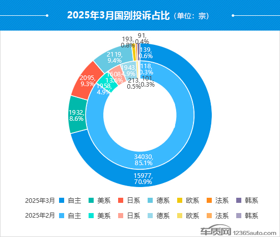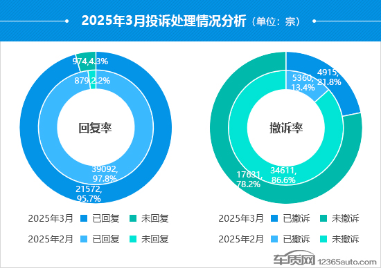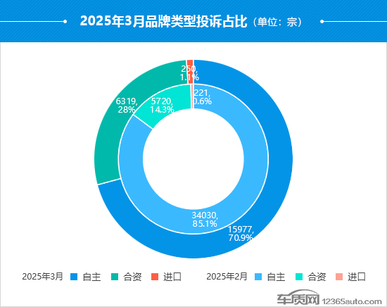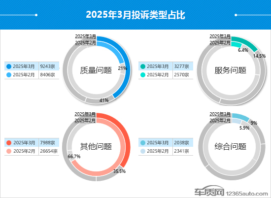 据国内领先的缺陷汽车产品信息收集平台车质网统计,2025年3月车质网共受理车主有效投诉信息22,560宗(其中含第三方平台和后装轮胎投诉共14宗),环比下降43.6%,同比下降0.9%。一季度累计投诉量已超过7万宗,较去年同期上涨38.6%。