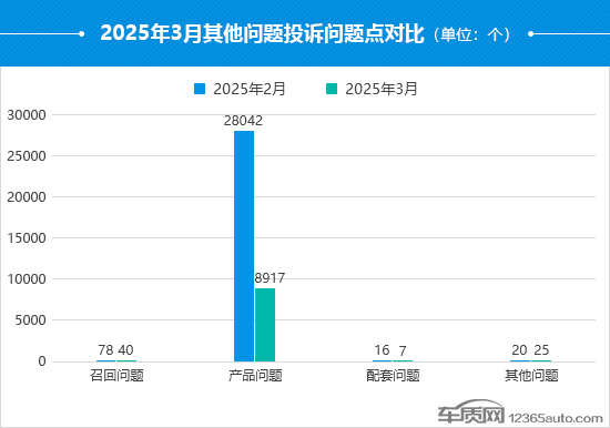 其他问题在3月份出现明显降温,投诉量环比大幅回落。产品问题虽然投诉问题数成倍下降,但依旧占据了超过99%的投诉份额,“新旧款迭代纠纷”仍是投诉焦点。此外,“厂家不召回”问题再次现身,但投诉问题数较少,排名垫底。