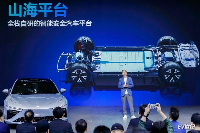 山海平台可覆盖A-C级的主流产品尺寸,车型可容纳SUV、轿车、MPV以及运动轿跑车;具有单电机前/后驱、双电机四驱灵活驱动布局,最高峰值功率超过500kW,百公里加速时间进入2秒俱乐部;线控底盘、域控制、高阶智能驾驶辅助系统等一一具备。