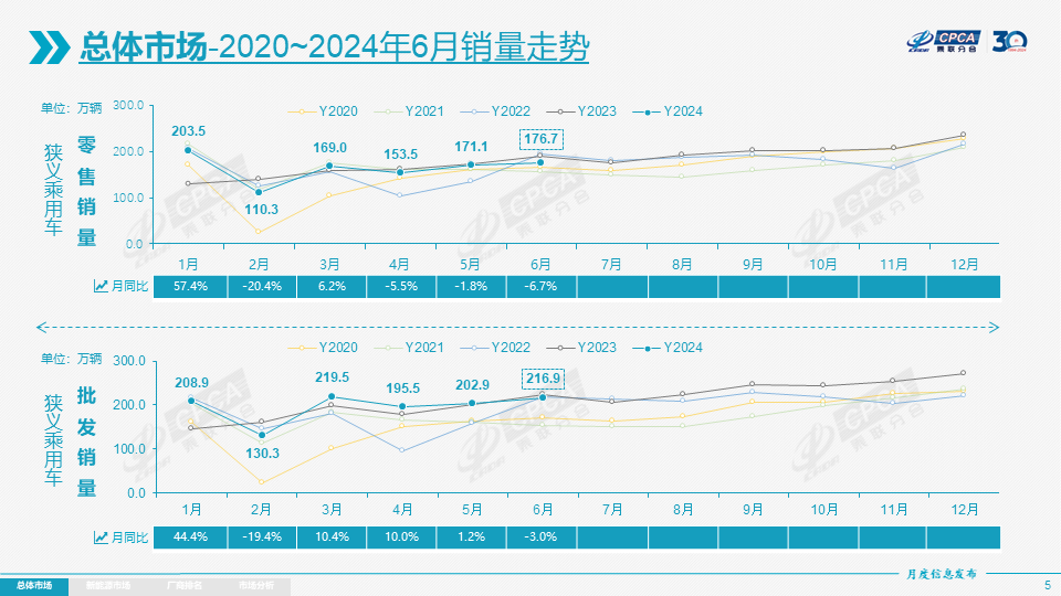 7月8日下午,乘联会发布的最新数据显示,6月全国乘用车市场零售176.7万辆,同比下降6.7%,环比增长3.2%,上半年累计零售达到984.1万辆,同比增长3.3%。
