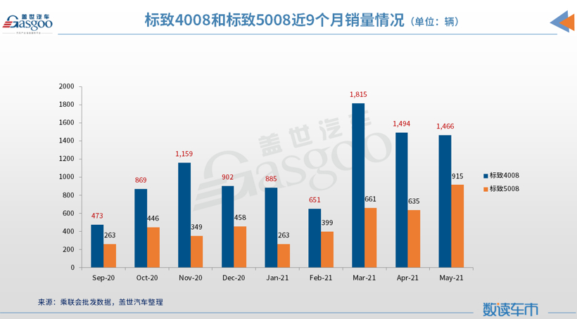 那么,被寄予众望的全新4008和全新5008上市后的表现如何呢?从东风标致5月份的销量来看,标致4008的单月销量达到了1466辆,标致5008的单月销量上升到了915辆。这一数字虽然与我们通常认为的“畅销车”差距甚远,但对比4008和5008之前的市场表现,我们能够看出在新产品的助力下其销量正在缓慢提升。这对于当下的东风标致来说,或许就是最好的消息。