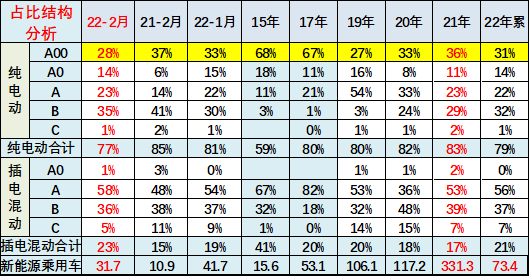 乘联会数据也显示,2021年A00和A0级纯电轿车的销量约为130万辆,在整体新能源车销量中占比约40%。如此庞大的销量占比背后,就是消费者的客观需求。“低购买成本和出行成本、停车方便”,其实翻翻那些买了新能源小车车主的用车体验,就能够充分感受到这些产品的超值之处。